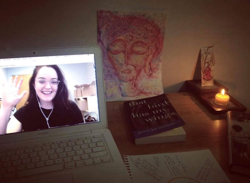 Na hovoru s Lilly Greenblatt, redaktorkou Lion's Roar. Rozhovor jsme zahájili minutou ticha; Lilly mi řekla, že na Lion's Roar je jejich praxí klanět se každému setkání, které mají.