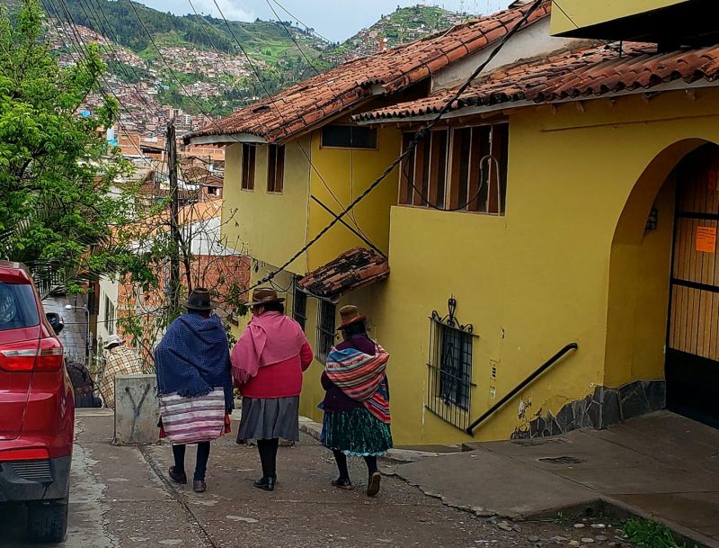 After a year or so had passed she began to share glimpses of her experience through Facebook posts—they were coded into haiku-like fragments—“It's not like giving my heart, it's more like having found one with a million different faces…” The posts were accompanied by exquisite photographs from her daily life in Cusco—sunrise on the rooftops of the city, curtains blowing in a sudden breeze, wildflowers on the mountainside, three elderly women in native garb walking down the street...