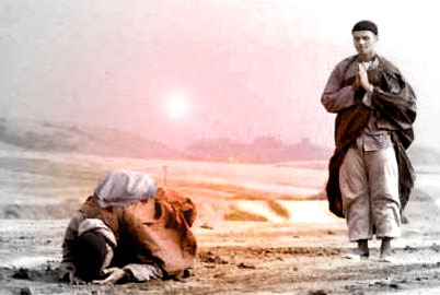 Since the third century CE to this day, bowing to the Buddha is the most common practice for Asian Buddhists. However, among Westerners, bowing practice, as compared with meditation, is not as well-known. Last summer, I had an opportunity to speak with Reverend Heng Sure, the director of the Berkeley Buddhist Monastery, and asked for more information about Buddhist bowing and repentance. In the late 1970s, Reverend Sure and a fellow monk did a three-year bowing pilgrimage for world peace along the coast of California. Their journey began in Pasadena and ended three years and 800 miles later at the City of Ten Thousand Buddhas in Ukiah. And most astonishingly, their knees had already endured over a million bows….