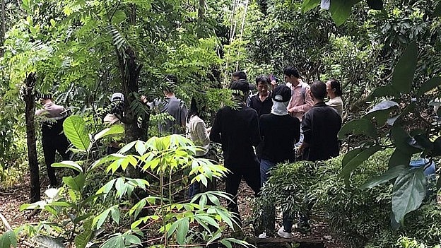Mr. Tuan shared: "To get short-term income, I intercropped bananas throughout the coffee farm. Wherever the bananas grew, the soil cooled down. Two years later, in 2019, I planted perennial forest trees under the banana canopy; 9 out of 10 survived.