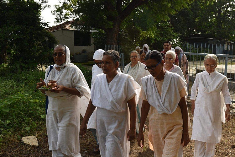 Then, from the distance I hear a faint, “Swasti.” Glancing across the garden, I see Kanchan, a sister who is my age and a good friend, walking towards me. She is dressed in her simple white khadi, cloth woven from cotton thread that she spun herself. She approaches, takes my hand, and says, “We waited for you. We waited as long as we could, but you did not come.”