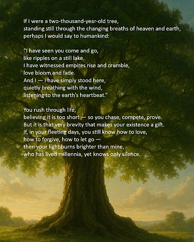 When I asked AI: “You are a 2,000-year-old tree, holding memories that modern humans no longer have — what would you say to humanity today?” And the answer left me completely silent.